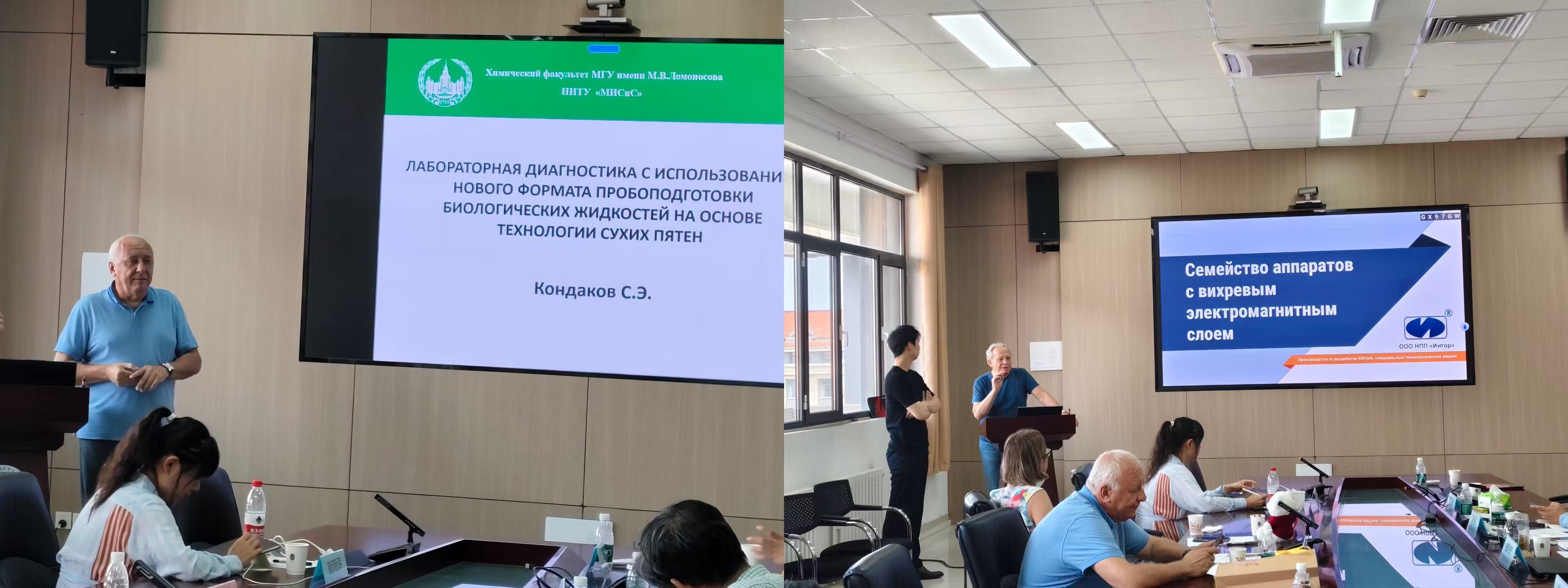 研讨会内容丰富,精彩纷呈。环境学院外事秘书宋岳系统介绍了学院的发展历程及在国际合作方面的成果。莫斯科大学康达科夫教授详细分享了该校化学系的卓越科研实力与国际合作经验。山东省地质矿产勘查开发局总工程师彭玉明分享了实践经验,表示地矿部门希望与国内外高校加强合作,加速科研成果的转化与应用。