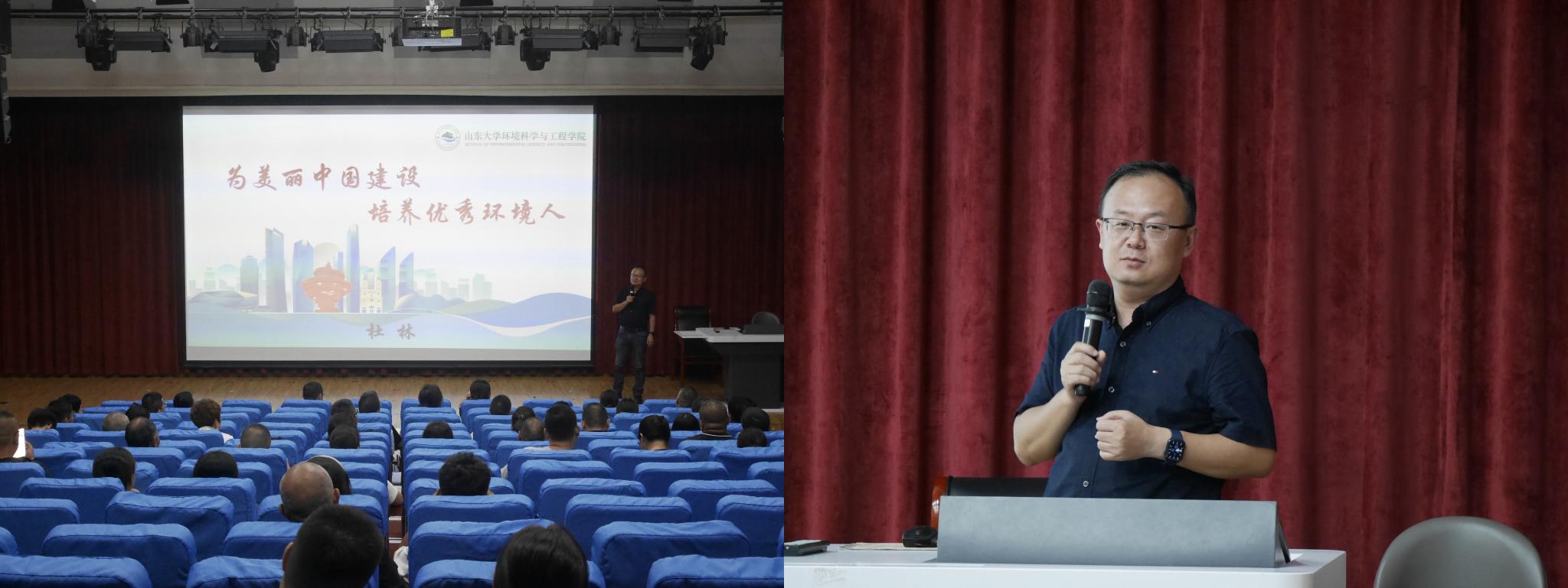 杜林作了题为“为美丽中国建设培养优秀环境人”的主旨发言,引用中国科学院院士唐孝炎、王文兴的观点,指出环境学科是因应国家重大需求而诞生,伴随生态文明进程不断发展的关键领域。随后,他从历史渊源、地理位置、人文概况等方面全方位介绍了山东大学,从专业分类、师资结构、科研成果、国际交流等方面介绍了学院育人体系建设,号召全体山大环境人为全面推进美丽中国建设贡献力量。