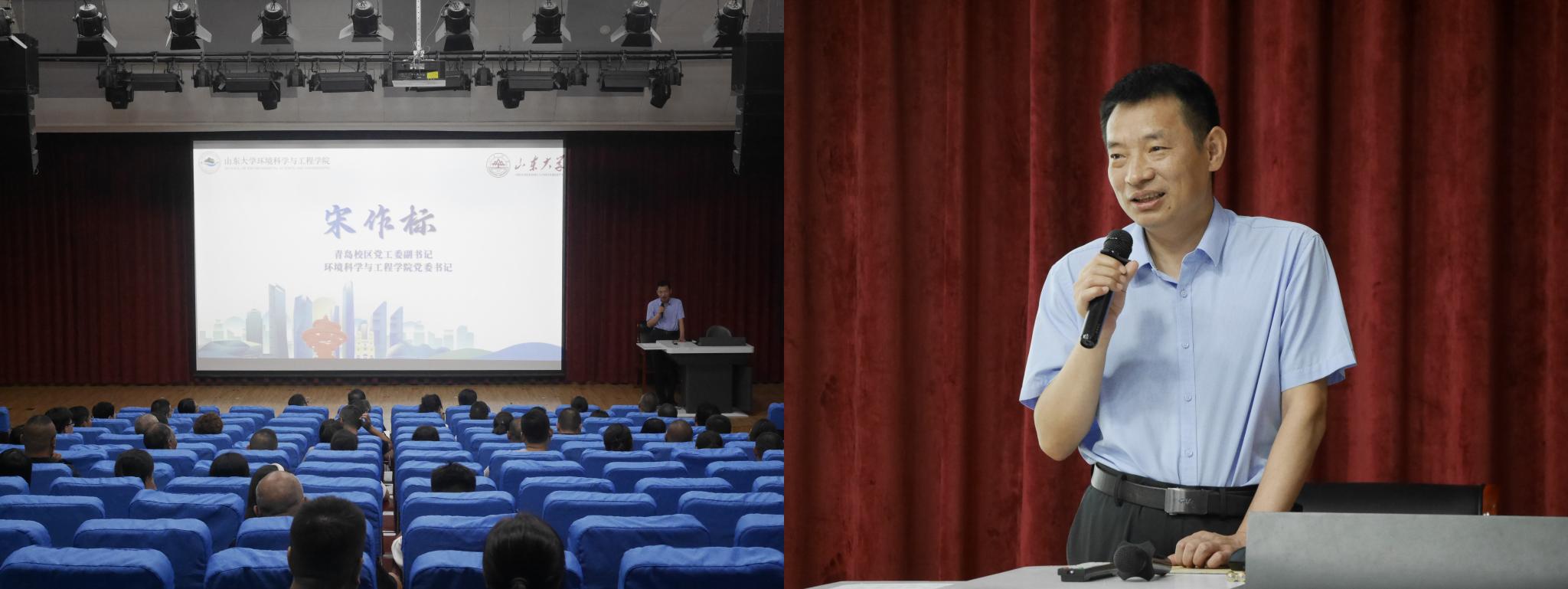 宋作标代表学院全体师生向2025级新生家长表示热烈欢迎与诚挚祝贺,并从环境专业视角出发,对本科新生的培养和教育提出期许。第一,要厚植家国情怀,勇担时代重任。他鼓励学生将个人理想与国家战略紧密结合,成为生态文明建设的实践者和推动者;第二,要潜心钻研专业知识,锻造过硬本领。他强调,环境学科具有高度交叉性和应用性,学生需扎实掌握核心专业知识,将科研成果运用到日常生活,做到“知行合一”;第三,要遵循民生发展规律,创造社会价值。他希望学生充分运用所学知识,为广大人民群众营造良好生态环境,创造最普惠的民生福祉,实现山大环境人的家国理想。