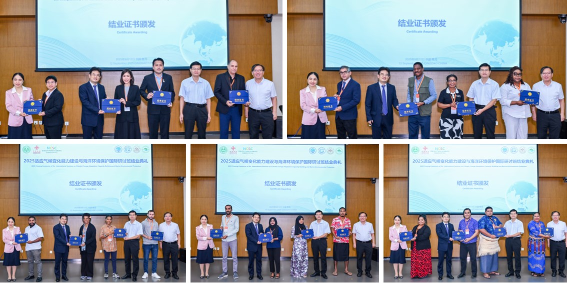 9月12日上午,由生态环境部主办、中国海洋大学与山东大学联合承办的2025年“适应气候变化能力建设与海洋环境保护国际研讨班”结业仪式在山东大学青岛校区顺利举行。来自巴布亚新几内亚、菲律宾、斐济、古巴、加蓬、马尔代夫、南非、瑙鲁、萨摩亚、所罗门群岛、泰国、汤加、印度尼西亚、约旦等14个国家的27名学员顺利完成全部课程,满载收获,圆满结业。