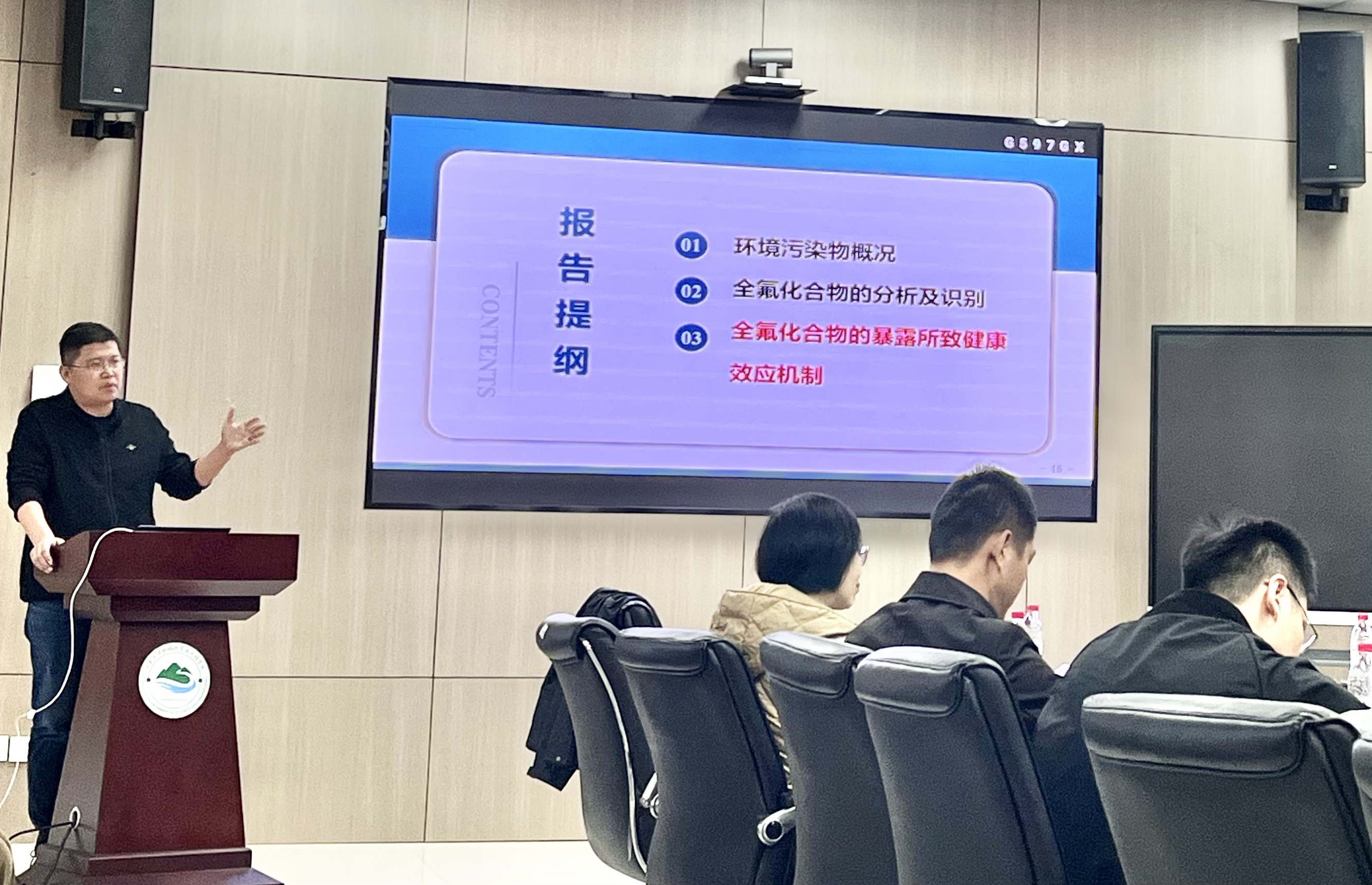 王亚韡在报告中系统阐述了新污染物在环境中的赋存概况,由此引出全氟及多氟烷基化合物(PFAS)的分析技术发展路径及PFAS对人体健康的潜在影响机制。他指出,PFAS作为一类具有高度环境持久性、生物累积性和毒性的“永久性化学品”,其环境监管与健康风险防控是当前国际环境科学领域面临的重大挑战。报告中,王亚韡研究员分享了其团队在新污染物识别、暴露组学研究与健康风险预警等方面的系列研究成果。结合国内外最新研究进展,他重点介绍了PFAS高灵敏、高通量检测技术的突破如何为厘清PFAS的环境迁移转化行为提供了“眼睛”;随后,他又深入解析了如何构建从外暴露到内暴露的精准人群暴露评估方法。
