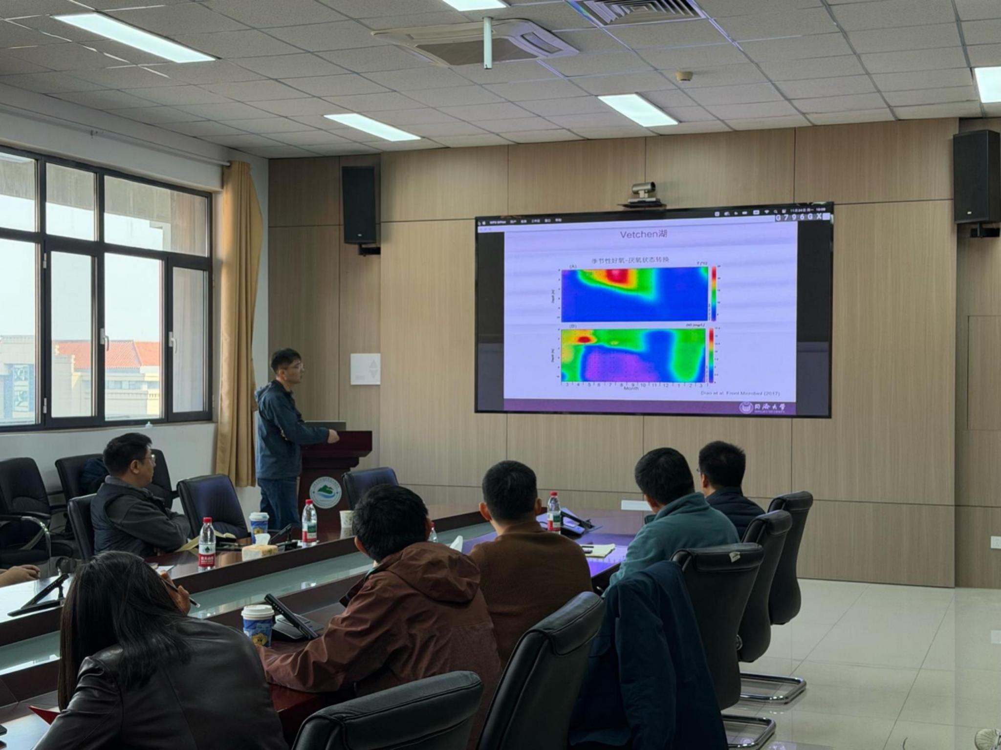 刁目贺在报告中系统阐述了微生物与水体好氧—厌氧状态转换之间的相互作用机制,通过从湖泊季节性分层到全球死亡区扩张的生态现象,引出微生物在氮、硫等关键元素生物地球化学循环中的核心作用。他指出,好氧—厌氧状态的转换不仅影响微生物群落结构,还通过微生物的代谢反馈进一步调控水体氧化还原状态,形成复杂的生态耦合关系。报告中,刁目贺研究员结合其在Vetchen湖的长期观测与室内模拟实验,揭示了微生物群落对环境扰动的响应规律,并展示了微生物硫循环多样性的最新研究成果,拓展了大家对硫循环微生物多样性与生态功能的认知。