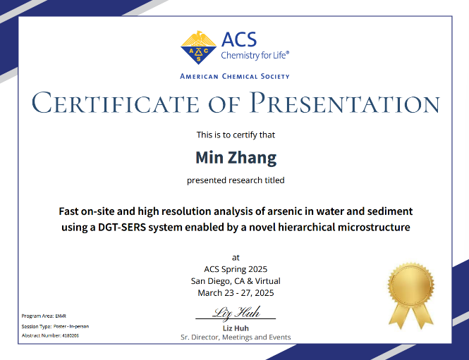 2024年5月- 2025年5月,受山东省政府公派出国项目及美方共同资助,作为访问学者赴美国开展新污染物研究工作,并在ACS Spring 2025等国际会议展示科研成果。