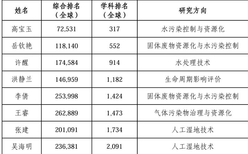 环境科学与工程学院多位教师入选2025年全球前2%顶尖科学家榜单 山东大学环...