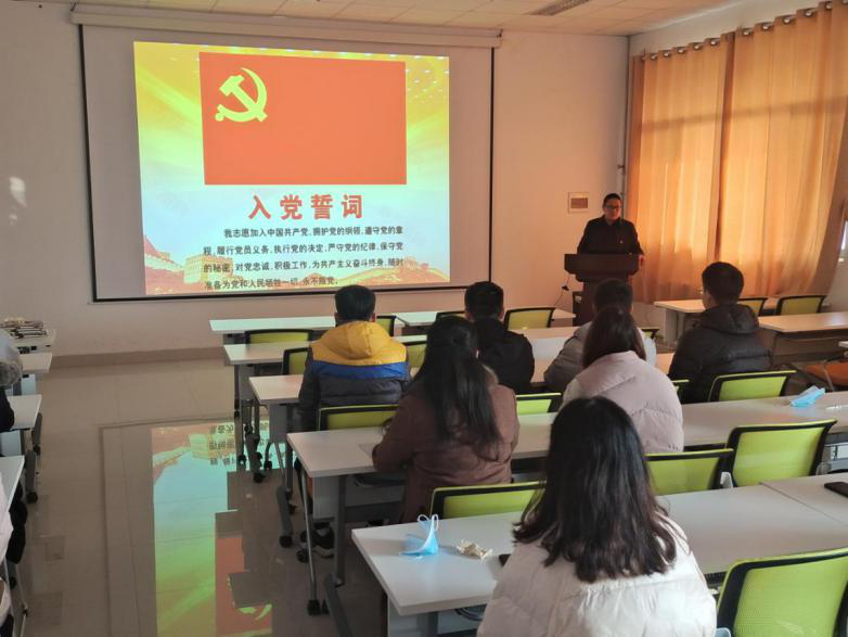 11月25日下午,环境学院在K5楼党员活动室举行了新党员入党宣誓仪式。环境学院党委书记王曙光出席宣誓仪式,党委副书记王斌代表学院党委致辞。党员代表及20名新党员参加了宣誓仪式。