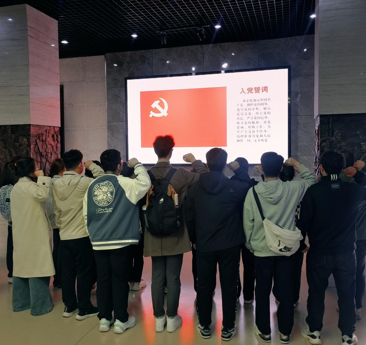 最后,全体党员面对鲜红的党旗,庄严地举起右手,重温入党誓词,以铮铮誓言彰显党员的初心使命。第六党支部党员傅成锴说,在面对党旗庄严宣誓时心中牢记着先烈为这个时代所付出的努力,没有什么岁月静好,只不过是有人在负重前行。入党积极分子赵吉锋说,革命烈士的英勇事迹和崇高精神将永远铭刻在人们的心中,激励着后人不断前行;入党积极分子王文昕说,在今后要铭记先烈的英雄事迹,热爱祖国,敢于担当,勇于奉献,积极向党组织靠拢;入党积极分子黄珊珊说,自己会不忘初心,努力成为一个对社会有益的人,为建设美好的祖国贡献自己的力量,愿祖国繁荣昌盛!