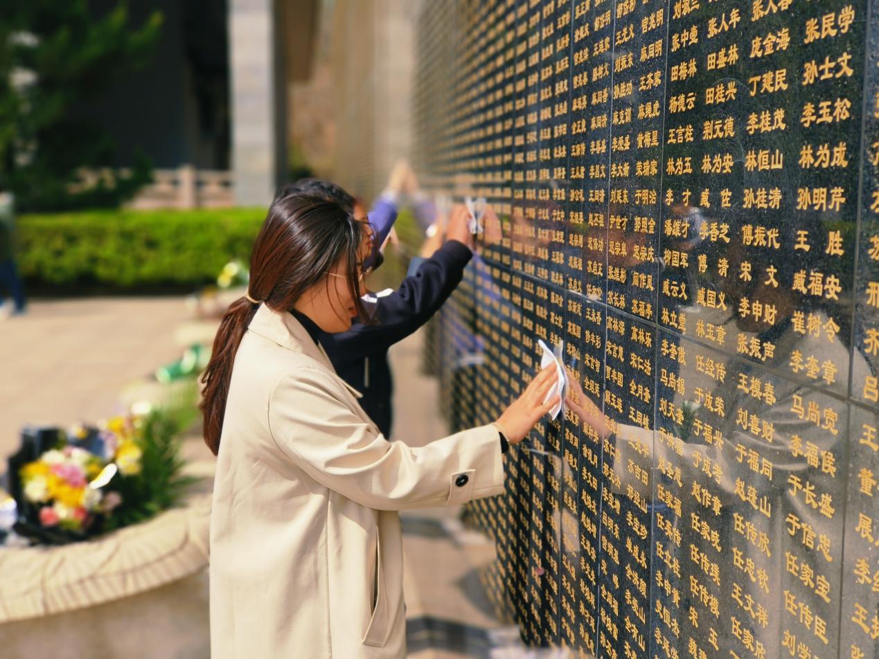 随后,大家有序瞻仰烈士墓碑,仔细阅读每一位烈士的生平事迹,在烈士墓前,大家怀着崇敬的心情鞠下深深的一躬。在青岛市革命烈士英名碑前大家驻足参观并用自己的手绢轻轻擦拭,向长眠的烈士们寄予无限哀思,共同缅怀革命英烈。