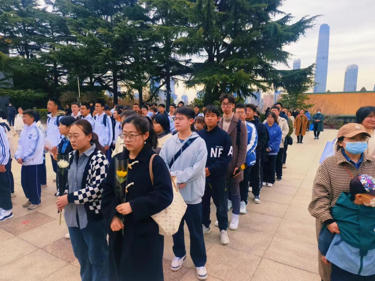 英雄广场庄严肃穆,“山河魂”雕塑巍峨矗立。大家手持鲜花整齐列队,向英烈肃立默哀,以最崇高的敬意深切缅怀为信仰、为国家、为人民奋斗牺牲的革命先烈。在悼念仪式之后,各位同志们怀着庄严肃穆的心情向革命先烈敬献鲜花。