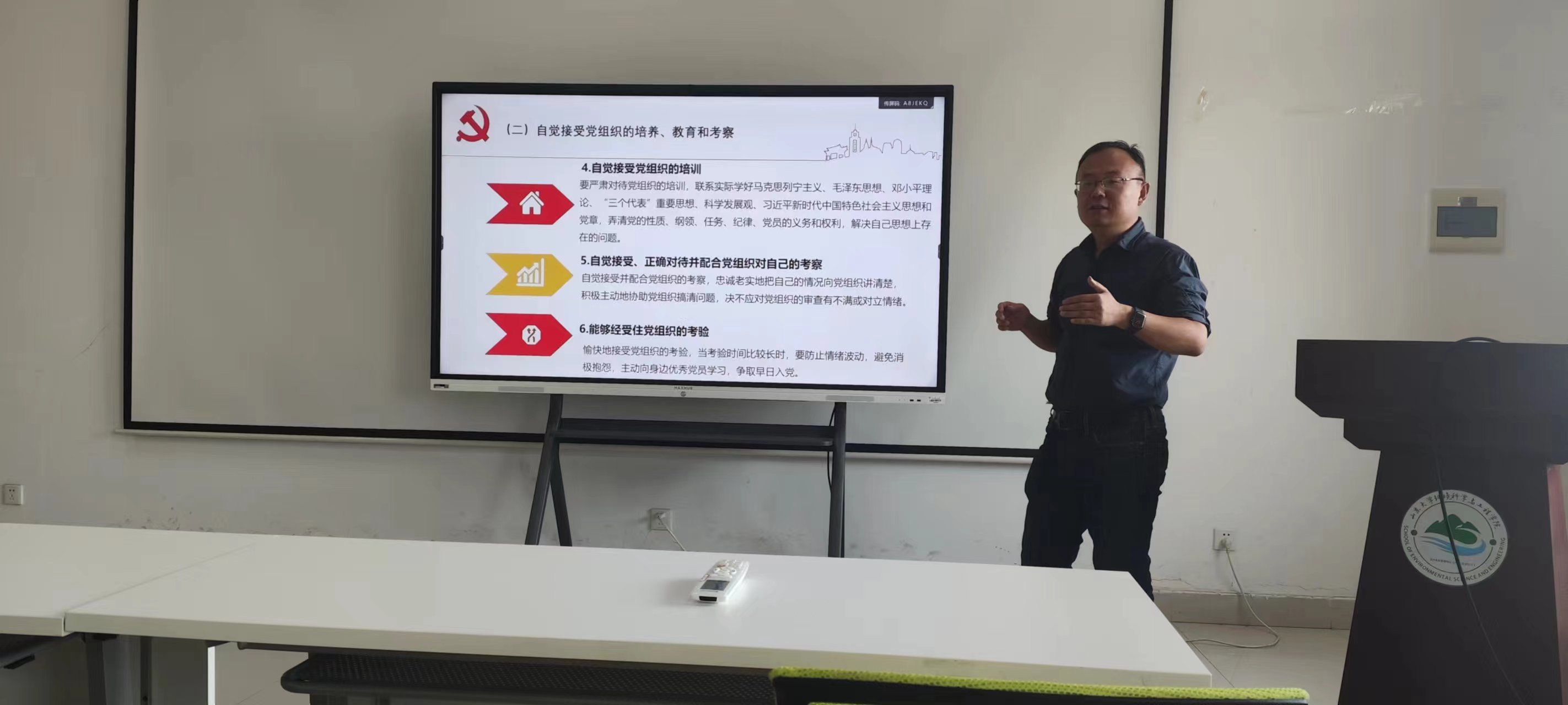 9月28日上午,环境科学与工程学院党委秋季入党积极分子党课培训活动开课。环境学院院长杜林、副处级组织员蒲业虹分别讲授党课,43名积极分子参加培训。