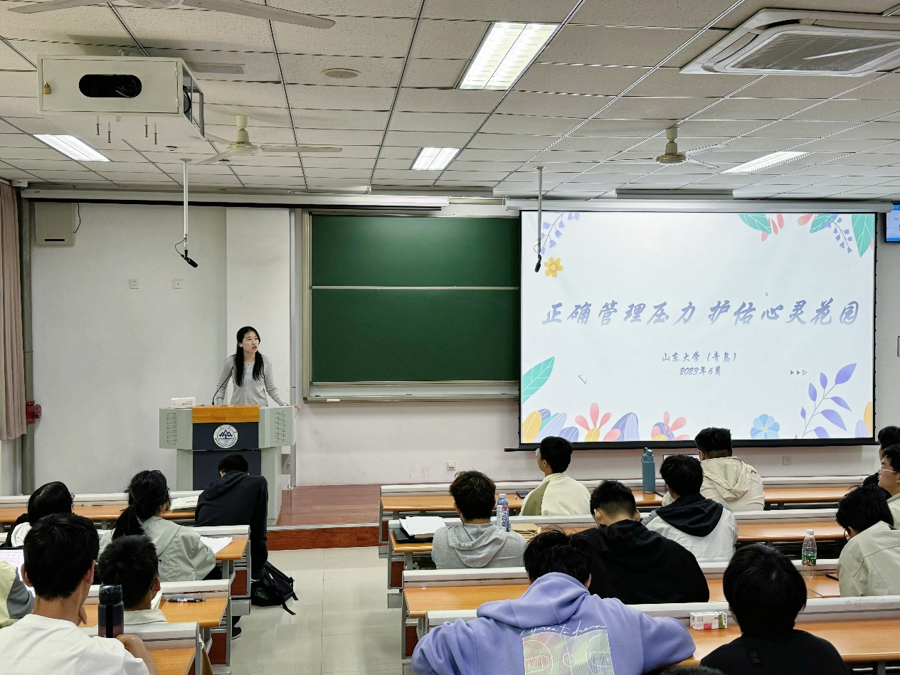 在活动中,李芮莹首先提到希望同学们认识到正确管理心理压力的重要性。她通过真实案例分享,让同学们了解到了心理压力的可能来源及其产生的影响,并针对同学们可能面临的各种心理压力,进行了深入剖析和讲解。她还表示,在面对学业、生活等各方面的压力时,同学们要学会通过多种方式进行应对,不能一味逃避或压抑。她分享了一系列有效的压力管理方法,如合理规划时间、培养兴趣爱好、进行适当运动、保持良好的社交关系等。最后,李芮莹鼓励同学们关爱个人心灵,关注自身心理状态,及时进行调整。