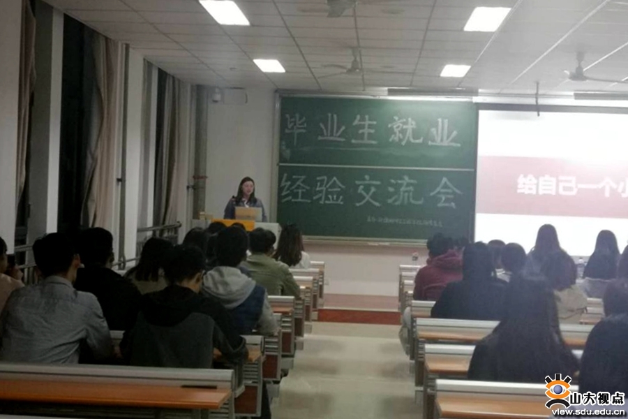 孙志强、王子阳、刘晓琳分别签约到了融创中国上海区域集团、华润置地(济南)有限公司和南大盐城环保技术与工程研究院。孙志强激情飞扬而又幽默风趣,以自己丰富的求职经验详细介绍了影响个人就业发展的几大因素:城市、公司、薪资和未来发展前景。王子阳从自身出发,向大家讲述了如何有效的获取招聘信息以及如何在面试中给面试官留下深刻的印象。刘晓琳以时间为轴,讲述了在获得南大盐城环保技术与工程研究院offer前后的那些小挫折和小幸运。