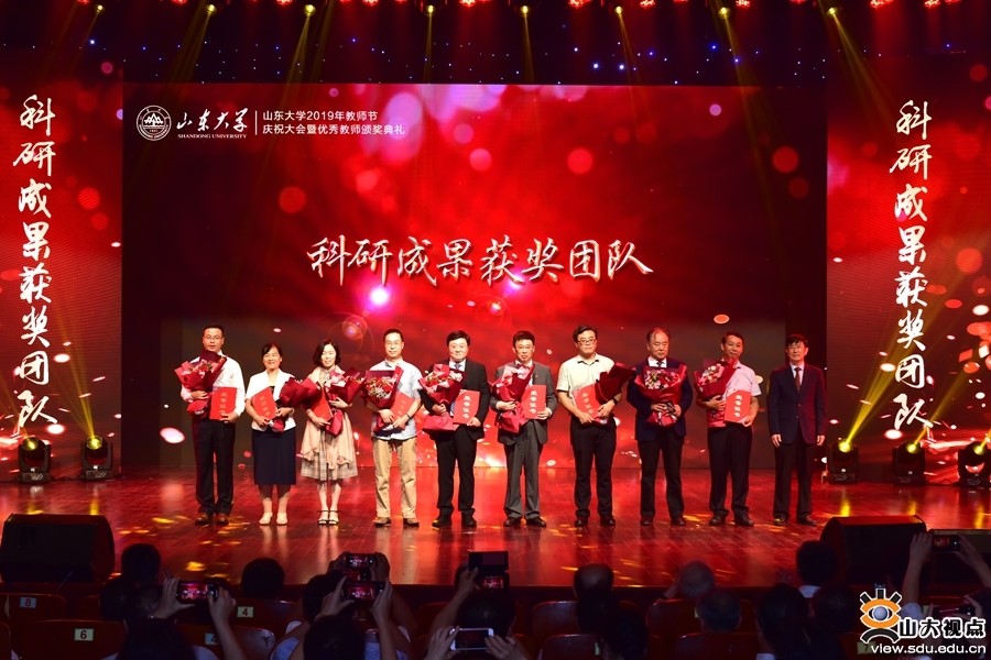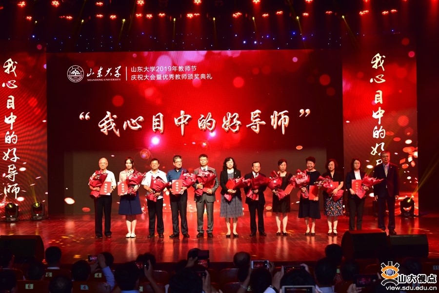 9月10日下午,山东大学2019年教师节庆祝大会暨优秀教师颁奖典礼在中心校区音乐厅举行,校党委书记郭新立、校长樊丽明出席大会并讲话。 在本次颁奖典礼中,环境学院王艳教授获得山东大学第十一届“我心目中的好导师”奖项,张建教授带领的流域治污科研团队获得科研成果团队奖荣誉。