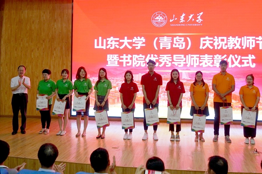 在青岛校区庆祝2019年教师节暨书院优秀导师表彰仪式上,学院赵珊教授获得了“十佳书院导师”称号,新进教师张宜峤作为新聘教职工代表上台领取了入职培训的结业证书和服务礼包。