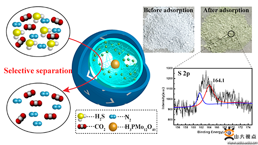 近期,山东大学环境科学与工程学院王睿教授课题组研究成果“Highly selective separation of H2S and CO2usinga H2S-imprinted polymers loaded ona polyoxometalate@Zr-based metal–organicframework with a core–shell structure at ambienttemperature(基于多金属氧酸盐@MOFs的核壳结构H2S印迹聚合物的构筑及其在常温下对H2S和CO2的选择分离性能)”在学术期刊Journal of Materials Chemistry A(IF=10.733,工程技术类一区顶级期刊)上发表,山东大学为独立通讯作者单位,王睿教授为通讯作者,博士研究生黄岩为第一作者。