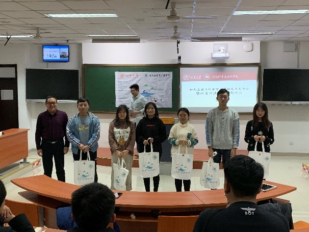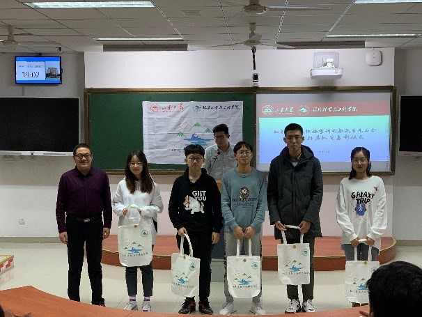此外,大会还表彰了2018、2019年暑期支教团队优秀志愿者代表,王斌老师代表团队为同学们送出了团队纪念品。