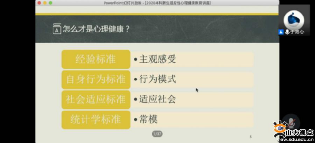爱校爱院,心安山大。为使新生尽快适应大学的学习方式,以更加积极健康的状态融入山大,9月14日,学院开展入学适应相关课程。青岛校区讲解员、2018级本科生白皓月向2020级本科生全面讲解了山东大学的办学历史、办学特色等,针对新生的实际情况,介绍了青岛校区的总体布局以及功能分区;李紫薇从安全意识培养、校规校纪认识、学风与成长规划、人际关系发展等四个方面对新生进行了主题教育,并分享了自己在山大学习的经历,鼓励新生以积极饱满的姿态投入大学生活。此外,学院联合青岛校区图书馆举办了图书馆文献检索讲座,详细讲解了纸质文献图书检索的方法以及中英文电子资源的使用。学院学生会还邀请了高年级学长学姐在线上与新生进行交流,介绍自己在学业、科研、社会实践等各方面的心得,解答新生的疑惑。10月16日,学院邀请了于路心开设心理健康讲座,为同学们在尽快适应大学生活,调节人际关系等方面提出了诸多建议。于路心通过列举丰富的案例,让晦涩的理论变得浅显易懂,为学院学生带来了一次心灵的洗礼。通过此类活动,同学们对学校设施、管理方式以及环境学科的科研与发展方向都有了深入的了解,也感受到学院的人文关怀。