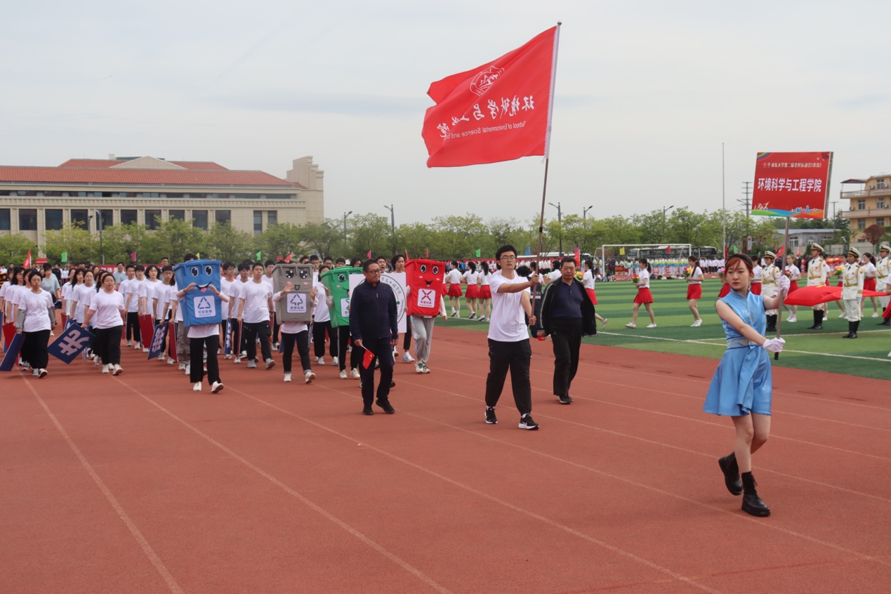 14日上午,运动会正式开幕。环境科学与工程学院方队整齐有序、精神饱满地走向主席台。以“莘莘学子无止境,百廿山大气浩然,青山绿水你我建,环境学院勇争先”的口号、别样的卡通创意和令人瞩目的标语表达了环境学院师生共同的理想、信心和决心,展示了环境人的独特风采,博得了全场阵阵掌声。