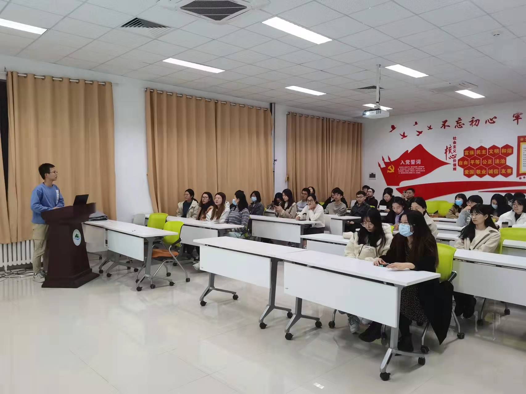 会议围绕“宿舍安全、校内外安全问题、网络安全问题”三方面内容展开。会议上,贾玉珂同志强调宿舍安全检查中同学们存在的问题并重点讲述宿舍违反规定情况的学院管理办法。在校内外安全方面,以亲身经历为范例提醒同学们注意安全,叮嘱同学们时刻保持高度的安全责任意识,不论在校园内还是在校园外都要绷紧安全这根弦。同学们也积极回应,在今后的学习生活中坚决执行学校的规章制度,彻底杜绝可能会造成安全事故的微小隐患。