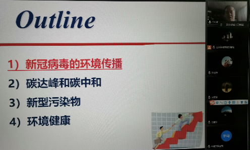 江桂斌院士通过线上会议进行了题为“环境与健康”的报告。江桂斌院士从新冠病毒的环境传播、碳达峰和碳中和、新型污染物及环境健康4个方面介绍我们环境人所面临的近期、长期和核心环境科学问题。