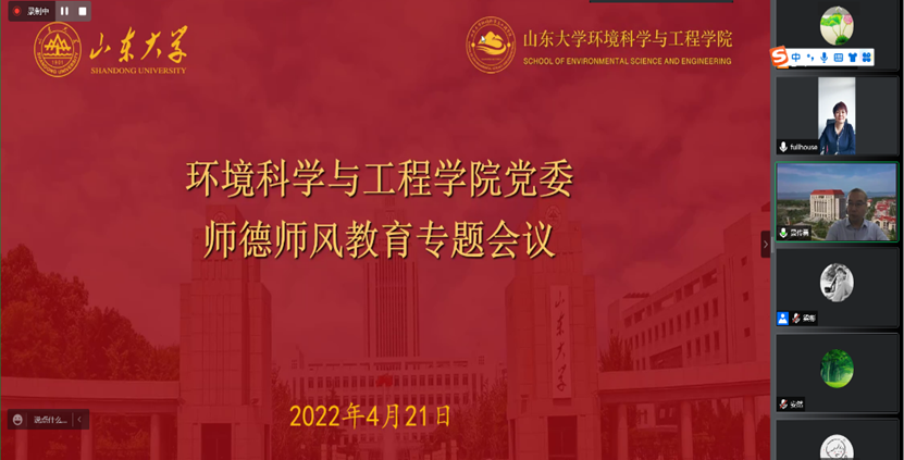 深入结合,精准发力。4月,环境学院充分发挥教师党支部政治功能和教师党员先锋模范作用,环境工程系教工党支部、环境科学系教工党支部、资源环境系教工党支部将师德师风建设与业务工作相结合,分别开展了学习师德师风建设相关会议精神和文件、提高疫情期间线上教学质量、导师对学生关心关爱帮扶就业等“三会一课”和主题党日活动,充分发挥党支部战斗堡垒作用,团结带领全体教师推进三全育人落地落细,落实立德树人根本任务。