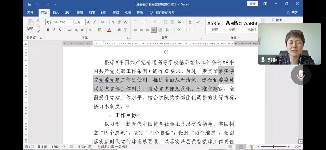 最后,刘健对党支部工作的规范化和标准化建设提出三点要求:一是支部工作要形成合力,充分发挥各支部委员的力量,明确分工,责任到人。二是支部建设要求质量,对标山东大学教师、学生党支部工作指导标准,提质增效。三是各支部要加强工作研究,研究如何组织高质量的“三会一课”和主题党日活动,研究如何将党建和业务工作深度融合。