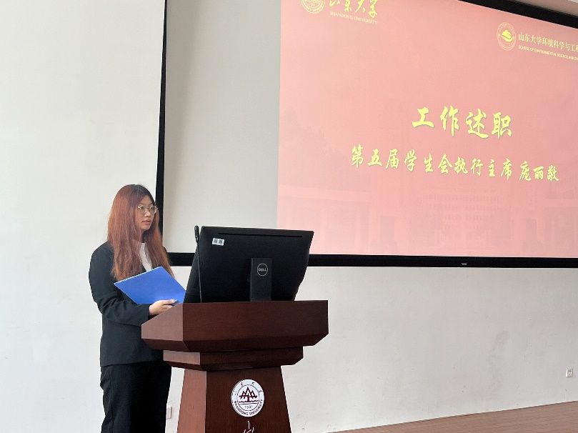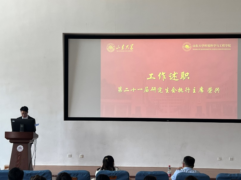 兼职团委副书记刘雨萱、第五届学生会执行主席庞丽敬、第二十一届研究生会执行主席荣兴分别做述职报告。报告首先回顾了过去两年所做的工作及取得的成就,并对科创比赛、文体活动、志愿服务等几个重点工作进行总结,同时提出了对学生会与研究生会工作的思考和对未来工作的建议。