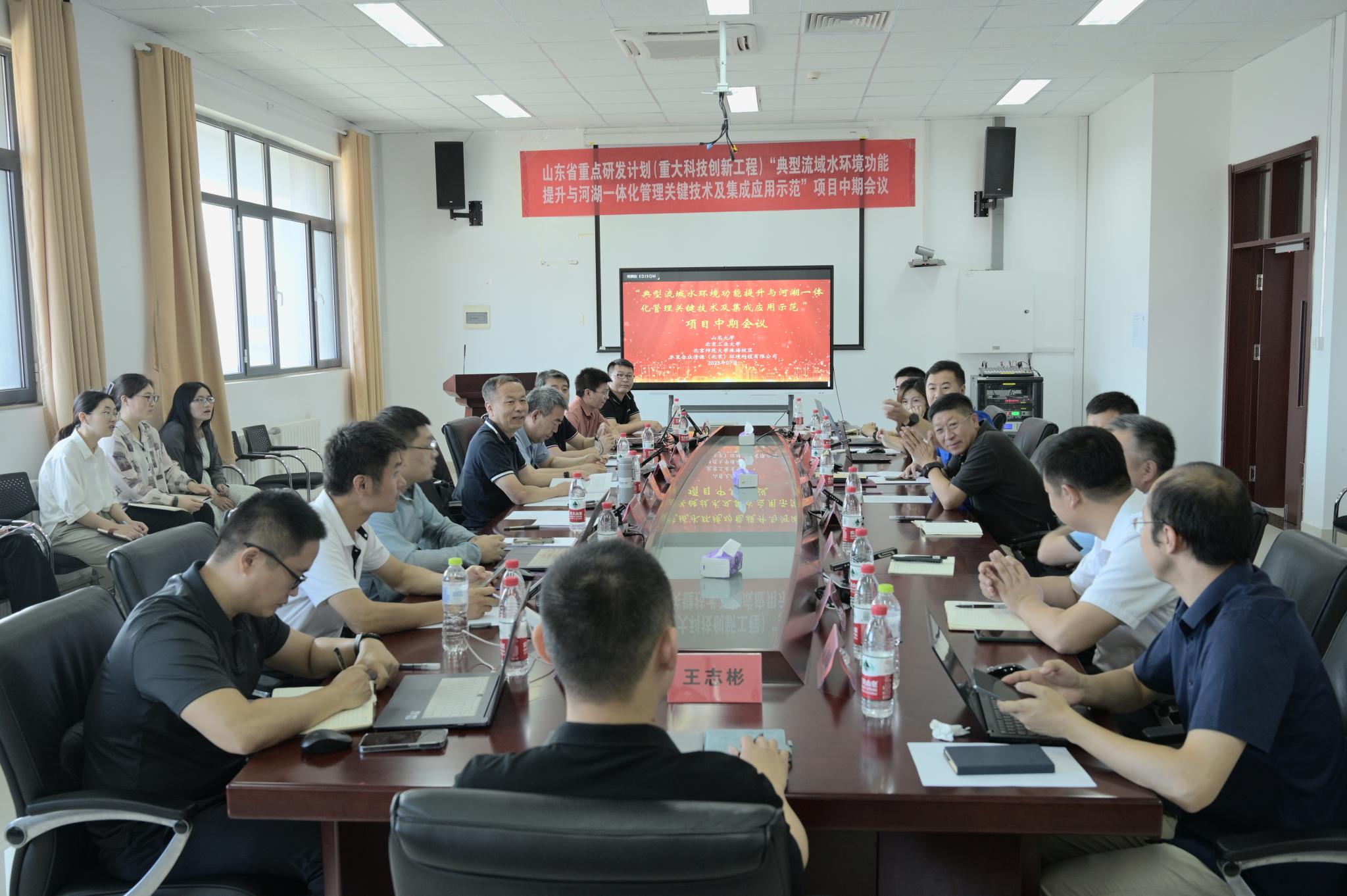 各课题负责人王志彬、张莉、王一峰、姚波、谢帅就各课题的任务进展、课题目标完成情况、经费执行情况等方面进行了汇报。与会专家在认真听取汇报后,就中期进展进行了论证质询和讨论交流。专家组认为项目面向国家和山东省重大战略需求,以提升黄河流域水环境功能、污水和废水资源化利用及河湖一体化管理水平为目标,按照任务书要求,开展了畜禽养殖废水处理和资源化、再生水体水质保障、河湖水环境模拟与可视化技术体系研究,建立了典型流域水环境功能提升与河湖一体化管理关键技术体系和产业化模式。建议深入总结项目示范经验,形成可复制的产业化应用模式,并结合区域和行业特点进一步推广应用,以凸显其示范引领作用。