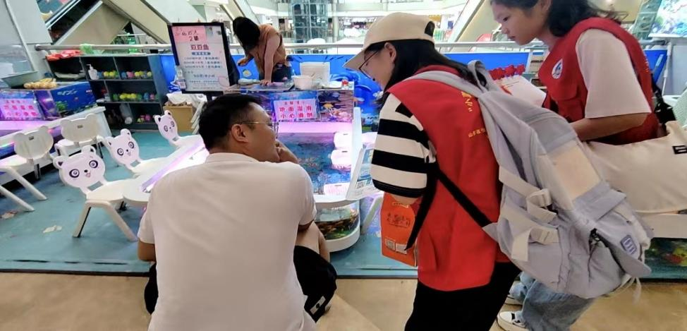 践行生态文明理念,投身美丽中国建设。调研团成员将生态文明理念付诸实践,以实际行动为环保事业贡献力量。线下调研阶段,调研团采取线上线下二元并行的方式开展活动。线下,调研团成员先后走访五四广场、万象城、即墨宝龙广场、即墨古城、滨海公园,以两人一组随机走访和铺设地摊定点调研的方式进行,通过设置抽红包、赠送扇子、便签、环保塑料袋等小礼品、借助商场推销活动引流等方式扩大调研样本数量。线上,团队成员在“SDU环保行动”微信公众号发布调查问卷,通过社交软件转发、问卷星互评等方式推广。