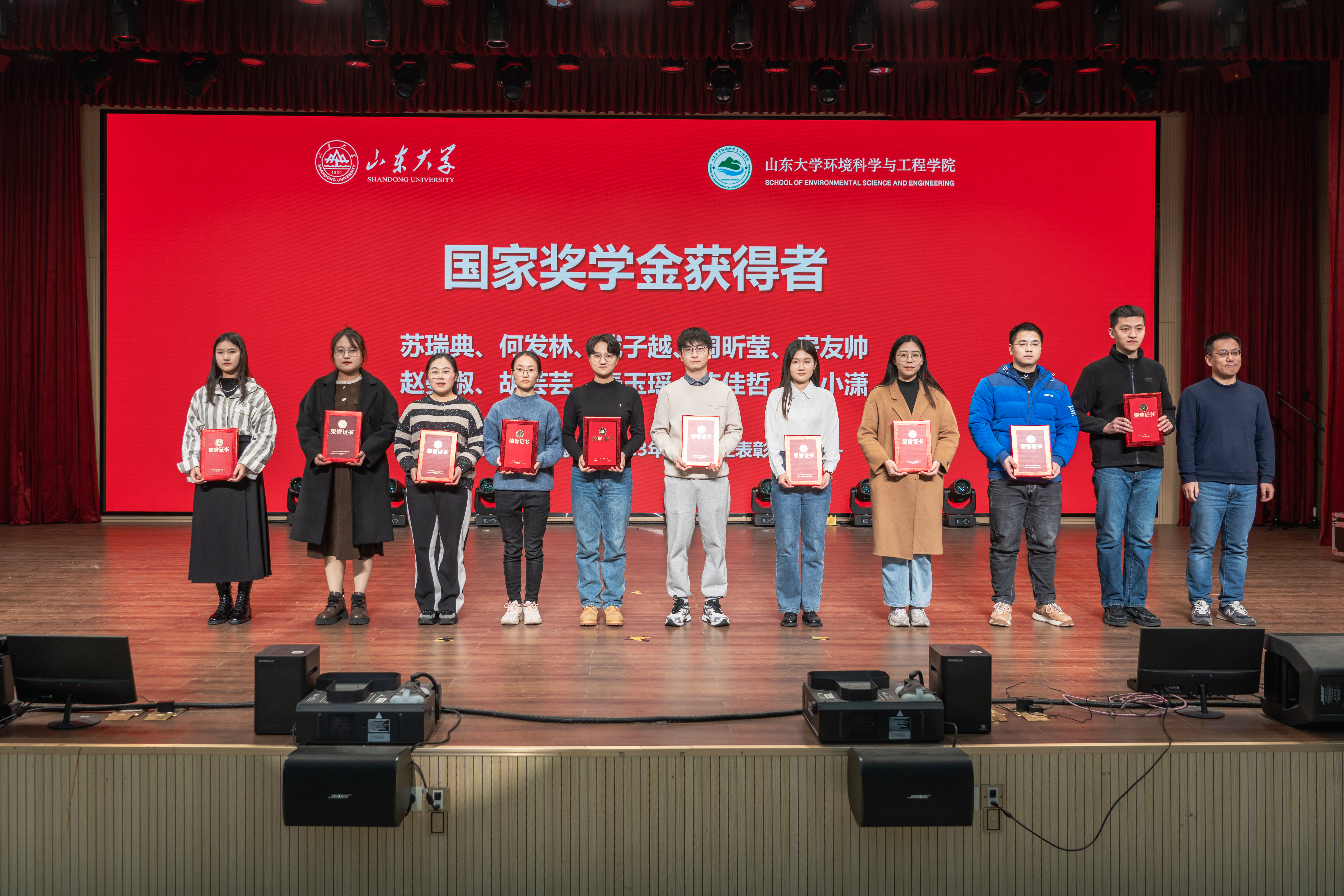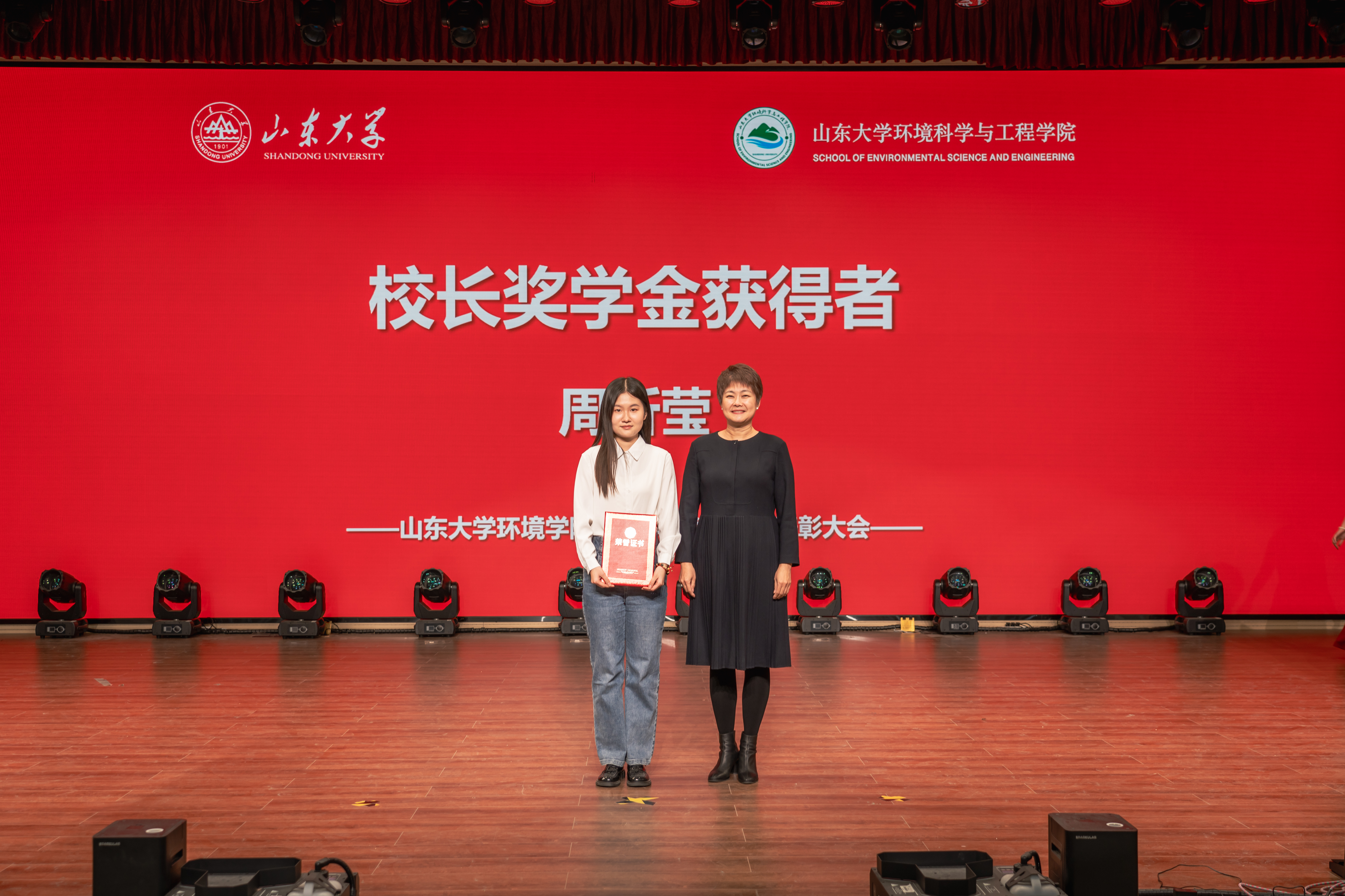 在优秀学生表彰大会环节,到场领导、老师为2023年表现突出的优秀个人、集体进行颁奖,包括:校长奖学金获得者周昕莹,国家奖学金获得者苏瑞典等10人,山东省政府奖学金、山东省优秀学生干部王飒琦,山东省优秀学生栾天成等优秀学生受到表彰。此外,第十六届全国大学生节能减排社会实践与科技竞赛全国一等奖获得团队、第十八届“挑战杯”全国大学生课外学术科技作品竞赛全国一等奖获得团队、山东大学“十佳团支部”、山东大学十佳志愿服务组织提名奖获得团队--山东大学“初光”支教与环保宣讲团等优秀团队也接受了与会领导表彰颁奖。榜样引领方向,卓越成就未来。本次表彰大会充分展示榜样风范、传递榜样力量,有助于引导环院学子在新一年见贤思齐、奋起直追,更好展现青春风采。