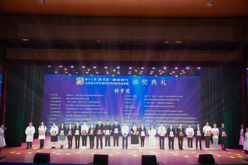 5月22日,山东省第十八届“挑战杯”大学生课外学术科技作品竞赛颁奖典礼在齐鲁工业大学举行。环境学院浒苔基铁单原子催化剂的绿色制备及其去除典型新污染物的增效机制研究项目进入省赛,荣获山东省特等奖并拟推国赛。
