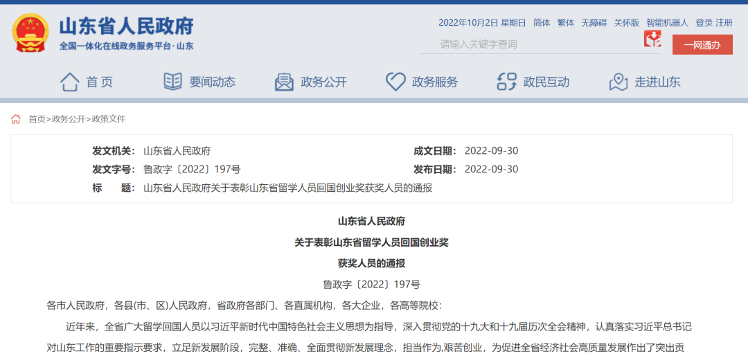 近日,山东省人民政府发文《关于表彰山东省留学人员回国创业奖获奖人员的通报》(鲁政字〔2022〕197号),对近年来留学回国人员中担当作为、艰苦创业、为促进全省经济社会高质量发展作出突出贡献的20名优秀留学回国人员进行表彰,授予“山东省留学人员回国创业奖”称号。环境科学与工程学院倪寿清教授名列其中。