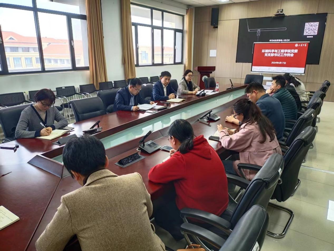 4月17日下午,环境科学与工程学院召开党纪学习教育工作部署会暨党支部书记例会。青岛校区党工委副书记兼环境科学与工程学院党委书记宋作标、党委副书记桑伟林出席会议,会议由副处级组织员蒲业虹主持。