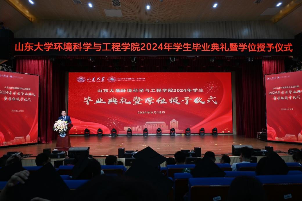 6月18日,环境科学与工程学院2024年学生毕业典礼暨学位授予仪式在青岛校区举行。杰出校友代表中国科学技术大学教授、国家杰出青年科学基金获得者刘贤伟、青岛校区党工委副书记兼环境科学与工程学院党委书记宋作标、环境科学与工程学院院长杜林、学院领导班子成员、学院学术委员会、学位评定分委员会委员、教师代表、2024届全体毕业生参加典礼。典礼由学院党委副书记桑伟林主持。