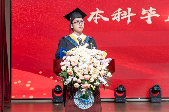 毕业生代表杨钰哲与黄睿分别代表本科生和研究生上台发言。