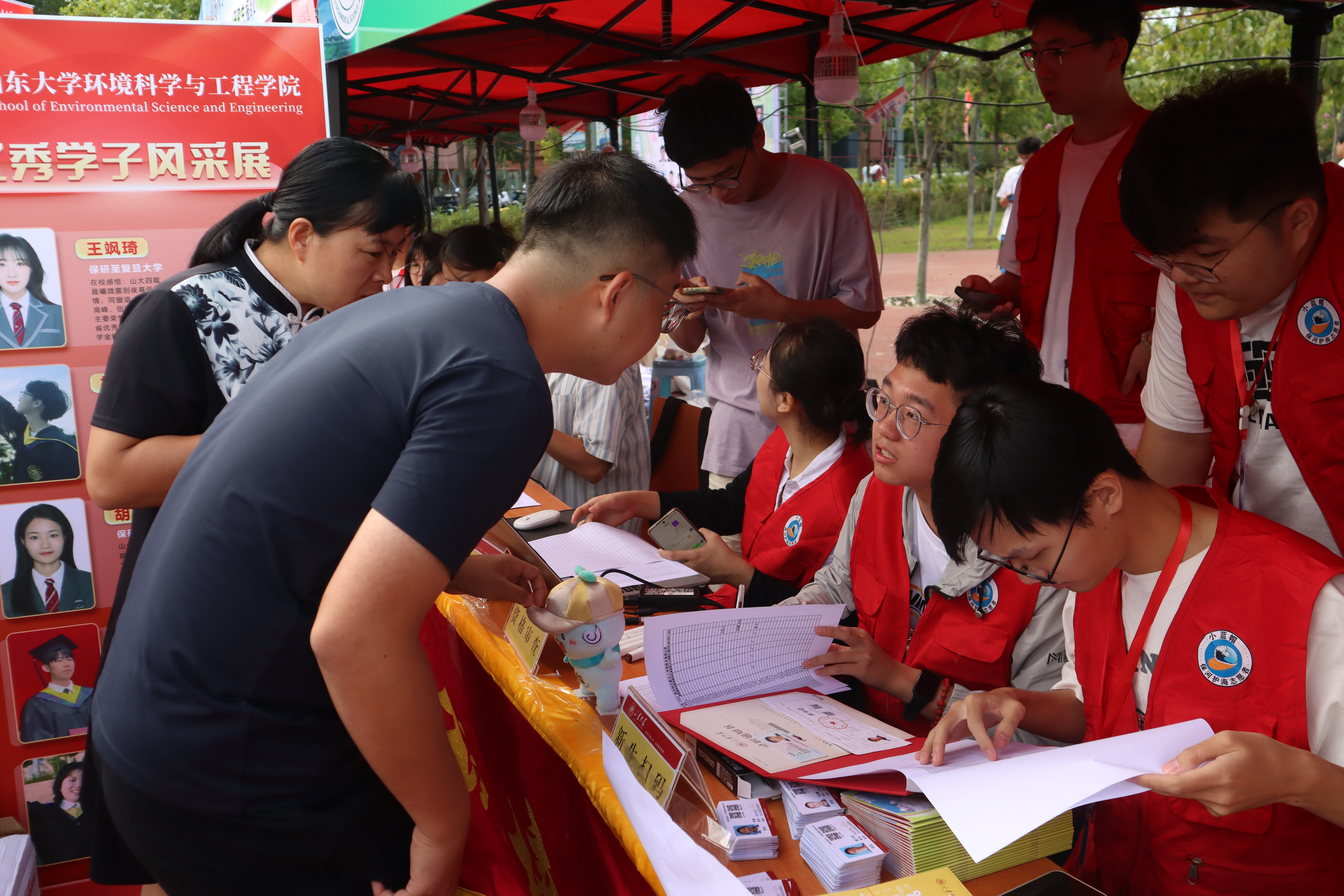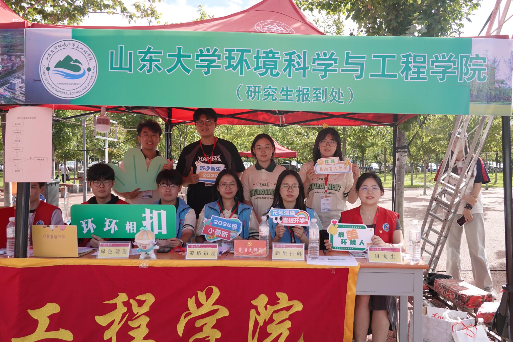 为确保迎新工作顺利进行,学院高度重视并精心策划,不断优化迎新环节。首先,通过公众号做了系列推送为迎新工作预热,涵盖入学适应、入学安全、学业指导等多项内容;学院以“环抱天下,逐梦山海”的理念制作了以绿色为底色的展板,并加以学院原创设计的吉祥物,生动显示出环境学院的特色,同学们与其亲切互动;学院还设置了“优秀学子风采展”,展现了环境学子的风采,以示对新生的激励;学院提前组织了迎新报到志愿者团队,分工明确,报到流程一气呵成,成员热心帮助新生搬运行李并答疑解惑;学生组织成员集思广益,设计了新生文创大礼包;学院还成立了党员先锋岗,有26名党员发挥模范带头作用,帮助新生解决报到过程中的问题和困难,助力学生更好地认识山大、熟悉校园,发扬了党员积极进取的精神风貌。整个迎新现场高效、有序。