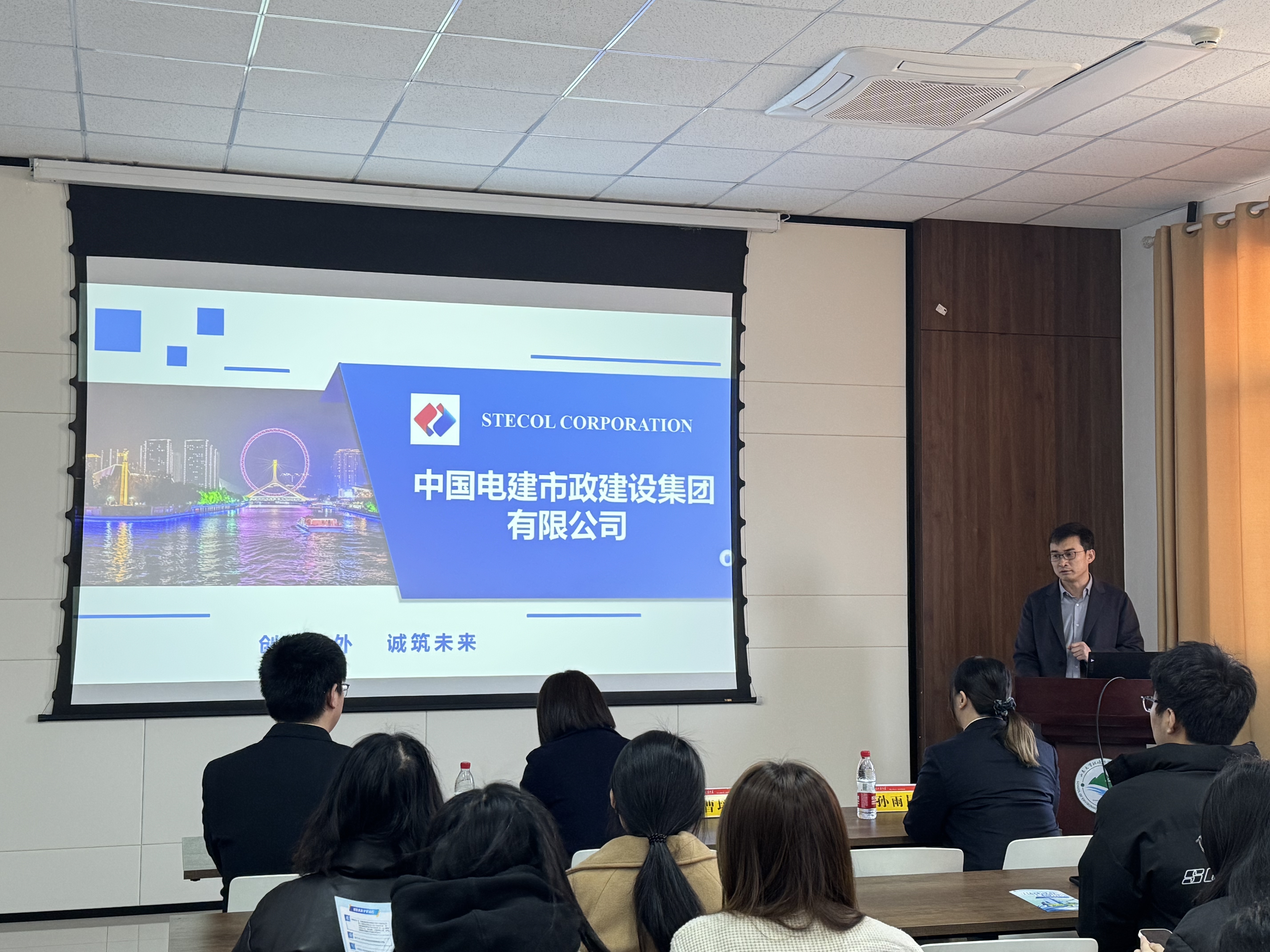 3月14日,中国电建市政建设集团有限公司人力资源部曹培军主任一行到访环境科学与工程学院洽谈交流并举行招聘宣讲会,环境学院党委副书记高正及辅导员代表参加活动。