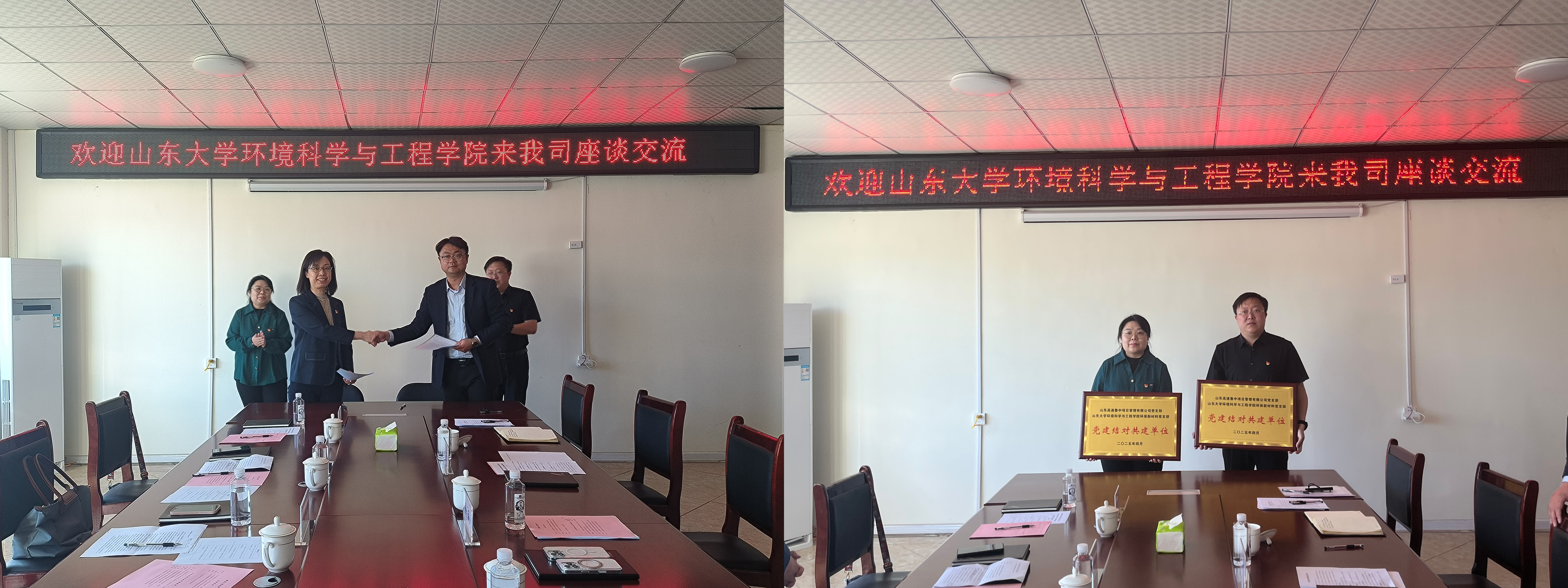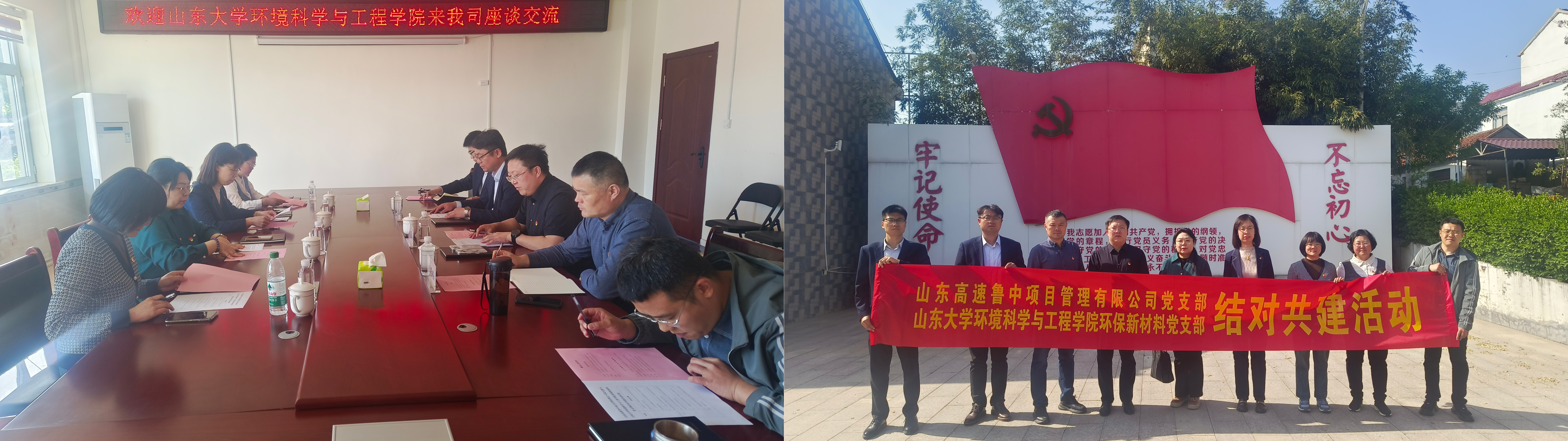 4月22日,山东大学环境科学与工程学院环保新材料党支部与山东高速鲁中项目管理有限公司党支部联合开展以“红色桥梁联校企,绿色发展共前行”为主题的结对共建活动。山东高速生态环境集团党委委员、副总经理、鲁中项目管理有限公司党支部书记徐坤,山东高速生态环境集团科技创新与研发中心经理刘晓鹏,山东大学环境科学与工程学院党委委员、副处级组织员蒲业虹,山东大学环境科学与工程学院党委委员、环保新材料党支部书记李倩出席活动。活动由鲁中项目管理有限公司总经理苏庆主持,双方党支部党员参加此次活动。