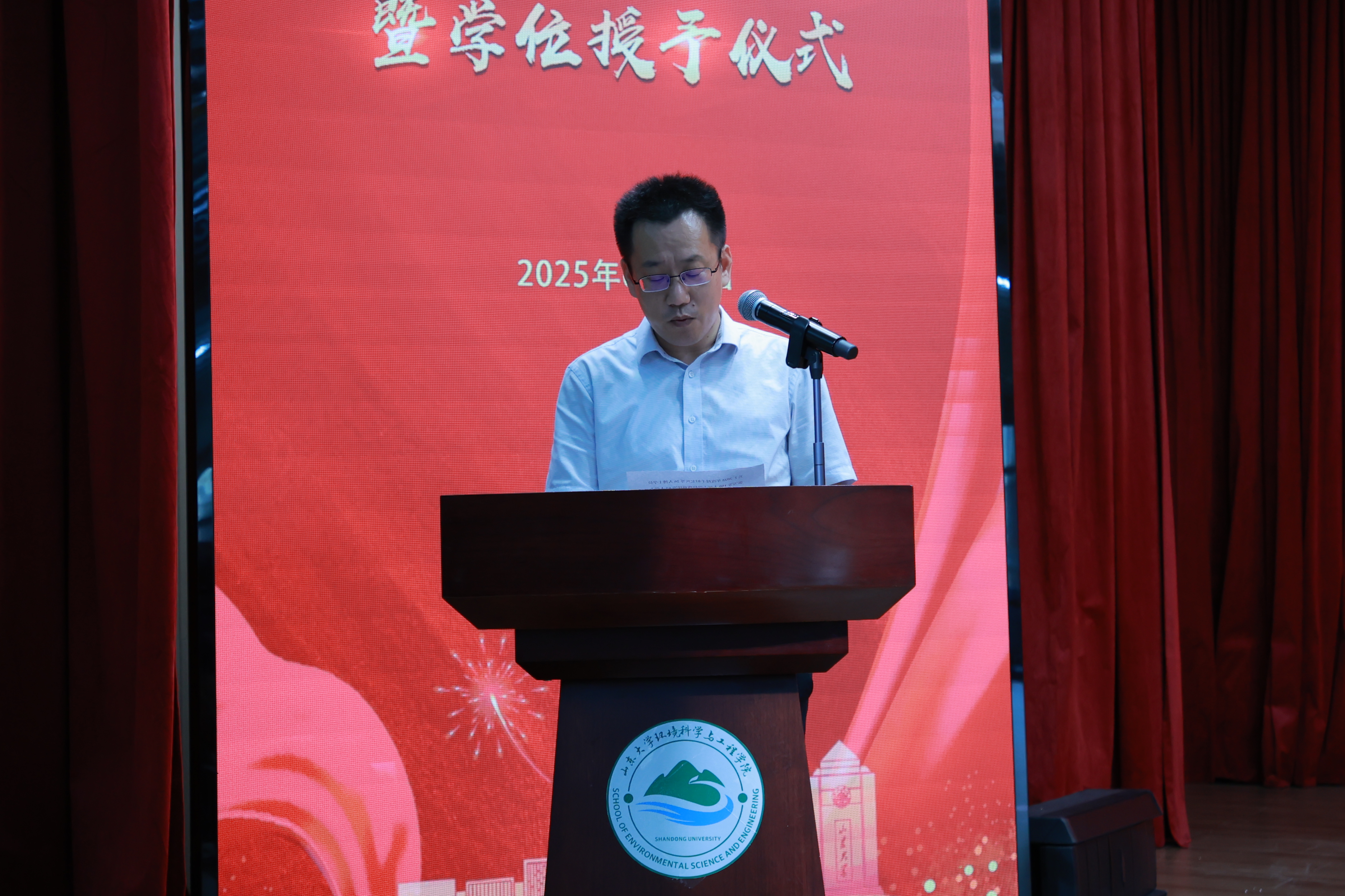 杜林以“环抱天下 逐梦山海”为主题寄语全体毕业生牢记山大环境人的使命与担当。临别之际,他提出三点期望:一是永葆家国情怀,将个人理想融入国家发展;二是勇探科学前沿,以创新思维破解环境困局;三是矢志生态守护,为可持续发展贡献智慧,期待环境学子在时代浪潮中勇毅前行,书写人生新篇章。