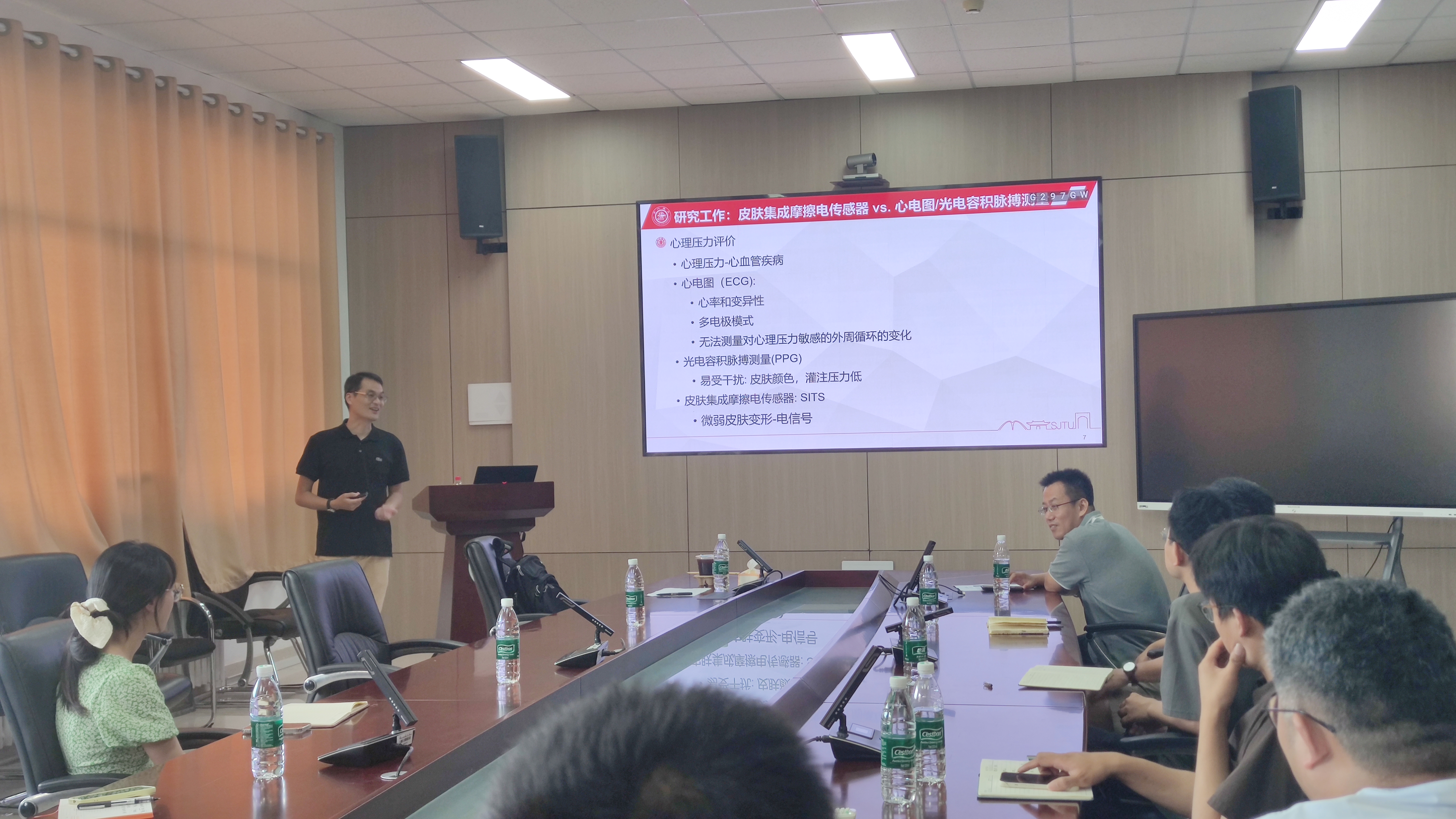 郑毅在报告中系统性地阐述了木质素生物材料的研究现状与发展前景。他指出,木质素作为一种资源丰富的优质摩擦电材料,其利用面临两大关键挑战:水不溶性和质脆。郑毅特别对比了传统监测技术的局限性,传统的心电图/光电容积脉搏测量存在无法测量对心理压力敏感的外周循环的变化和易受影响等问题,而皮肤集成摩擦电传感器可以将微弱的皮肤变形转化为电信号,实现更广泛的数据测定。此外,报告重点展示了其团队近年来在木质素利用方面取得的突破性进展:实现木质素在水相中的分散度比已知报道高出两个数量级,并成功取得了高度可扩展性的可穿戴摩擦电负性的木质素超薄膜。随后,他详细介绍了其课题组开发的个人健康监测传感器及其工作原理,传感器通过脉搏与木质素超薄膜的上下接触,将机械能转换成电信号。实验数据显示,设计的传感器相较于心电图取得了>95%的准确率,这项融合生物材料创新与医疗电子技术的研究成果引起了在场师生的浓厚兴趣。