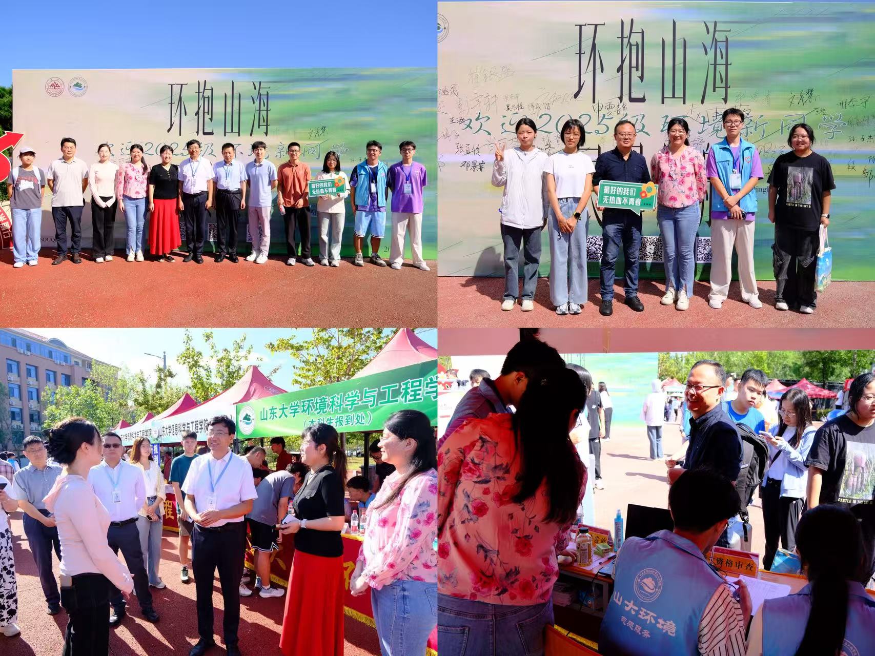 学院坚持以“环抱山海,展翼启航”为理念,系统开展迎新预热工作。迎新现场,以青绿色为主视觉的签名板成为合影热点,生动传递了环保理念与学科特色。