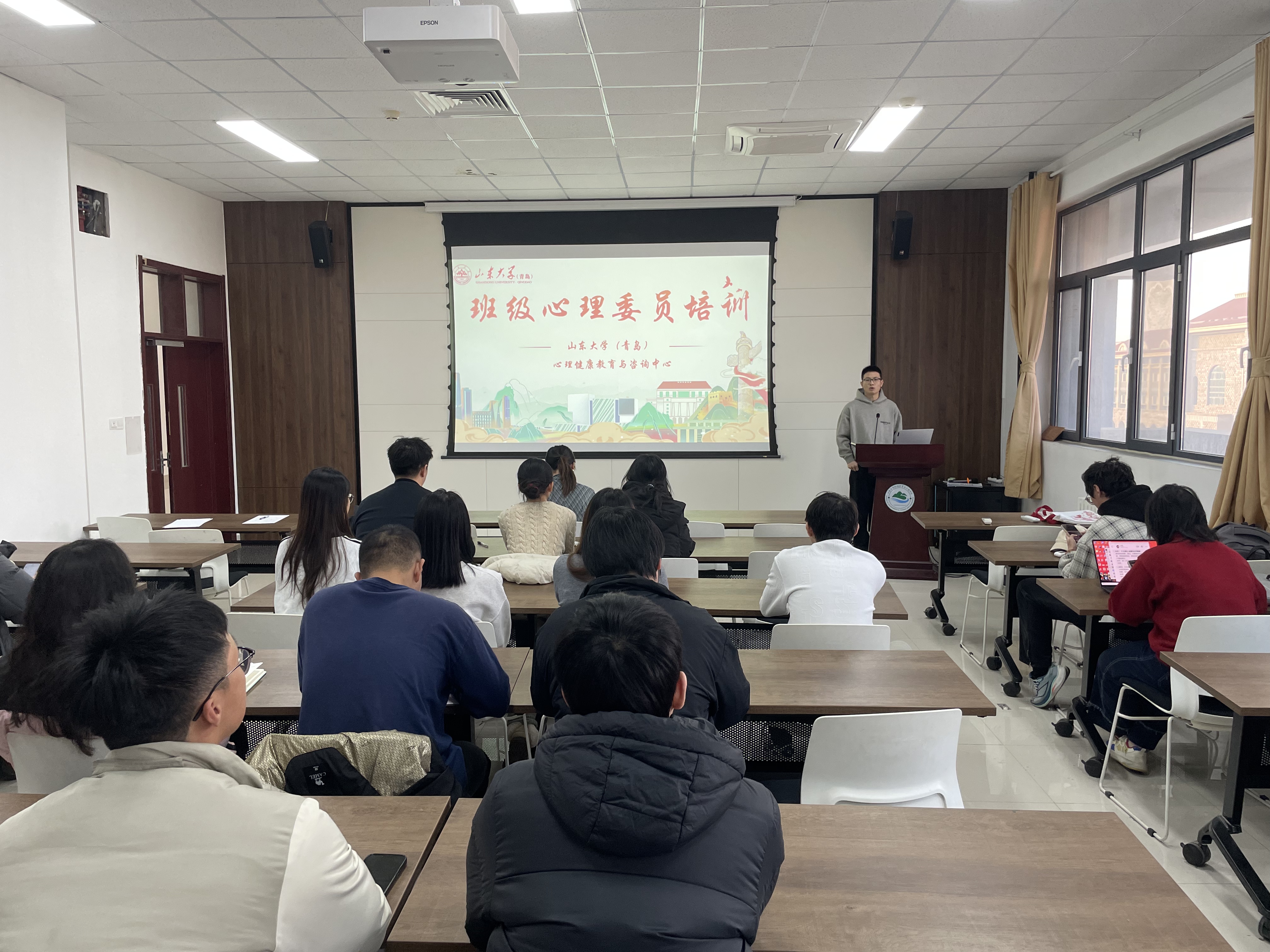 培训环节,侯强围绕心理委员的角色定位、必备知识、工作技巧及自我关怀等内容展开,重点讲解了心理健康的基本概念、常见心理问题的识别要点以及如何开展有效的心理帮助和支持等内容,帮助大家更好地掌握基础心理帮扶方法。同时,他梳理了青岛校区各类心理支持资源,为心理委员提供了丰富的后续支持与转介渠道。