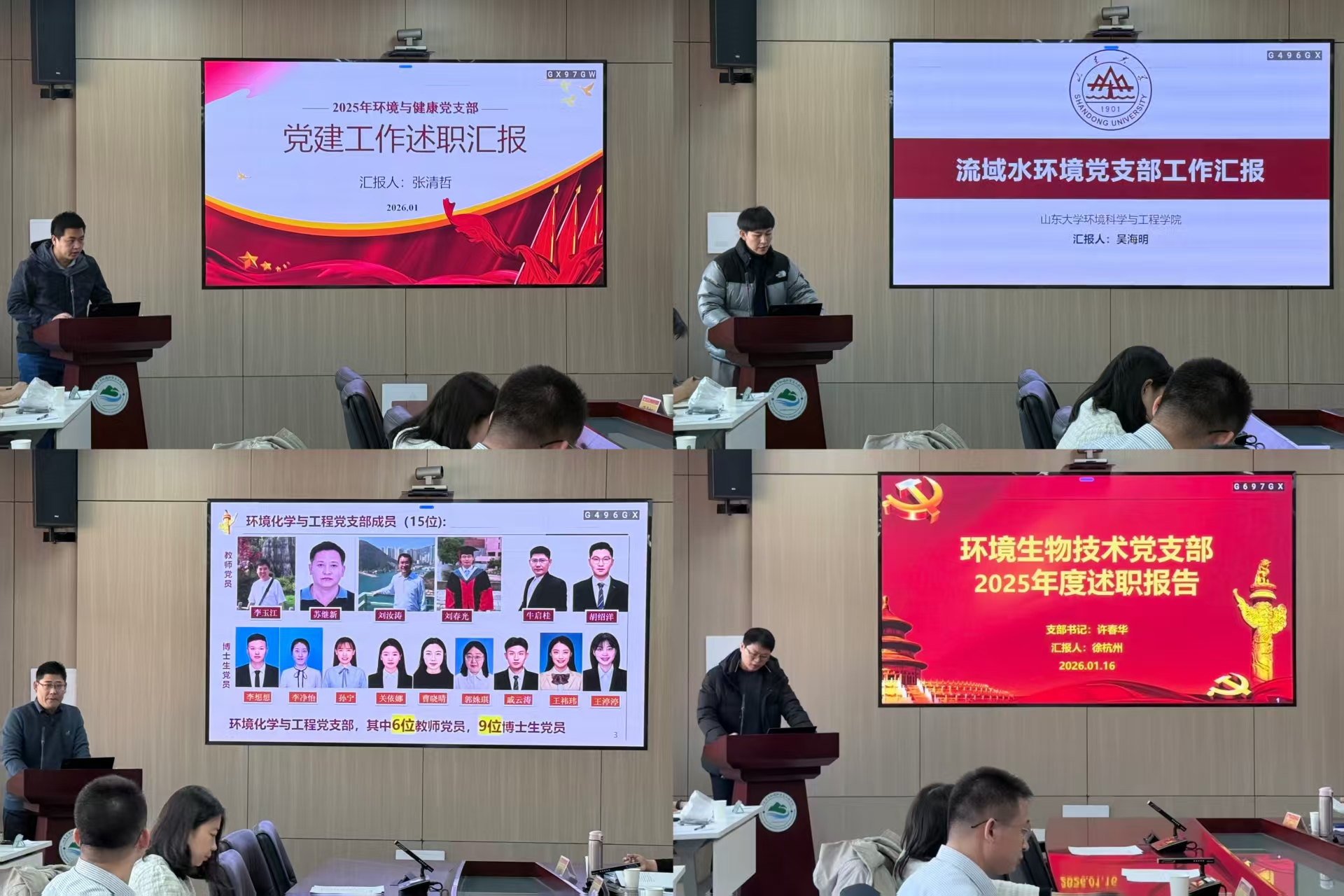 1月16日,环境科学与工程学院党委召开2025年度基层党支部书记述职评议会议。学校党委第八组指导组副组长盛瑞金、组员王雪梅到会指导,学院党委委员、全体教职工党支部书记参加会议,会议由青岛校区党工委副书记、环境科学与工程学院党委书记宋作标主持。