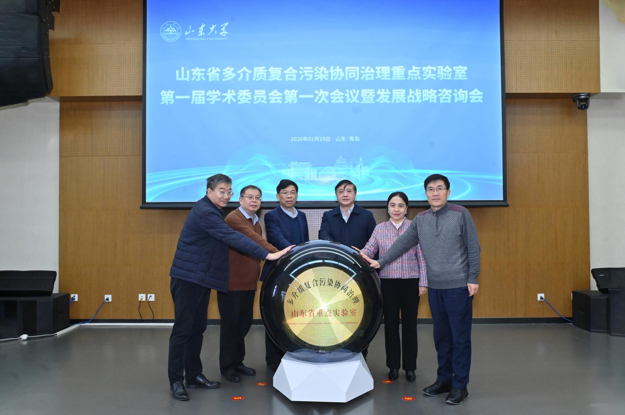 1月19日,“山东大学—山东省多介质复合污染协同治理重点实验室”揭牌仪式暨战略研讨会在山东大学青岛校区华岗苑北楼举行。中国工程院院士朱利中、俞汉青,中国科学院院士唐波,欧洲科学院院士陈建民,国家自然科学基金委员会庄乾坤等专家出席会议,山东大学副校长王美琴及山东省生态环境厅二级巡视员韩京安出席会议并致辞。