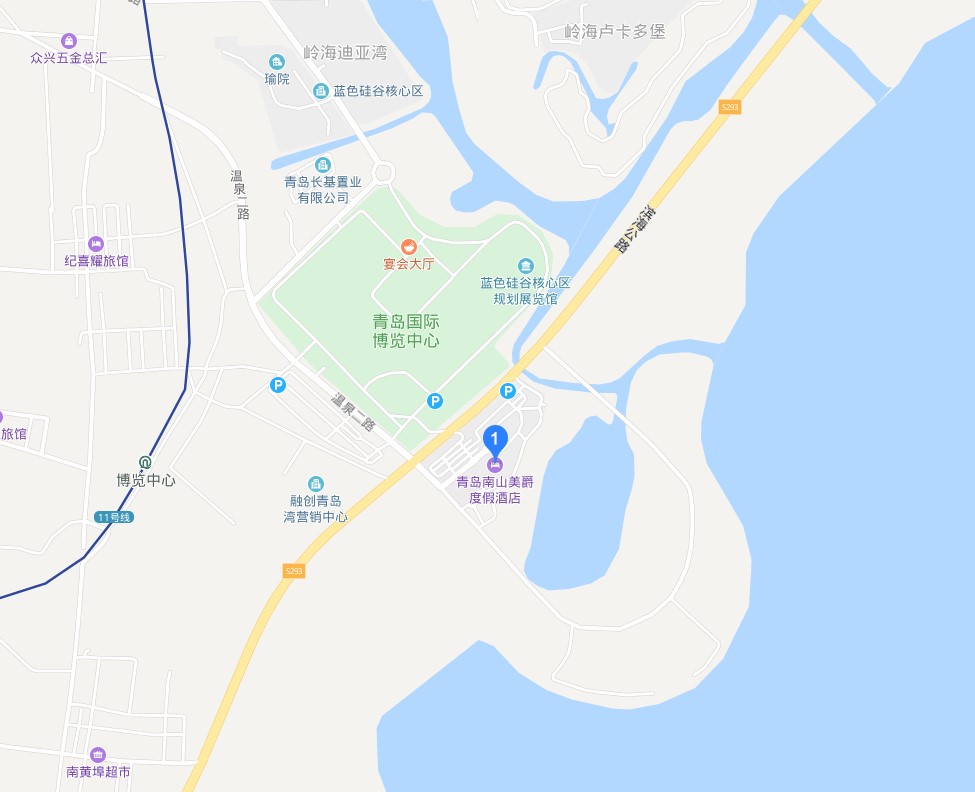 住宿地址:青岛南山美爵度假酒店(地址:山东省青岛市即墨区滨海大道温泉二路46号,见下图)