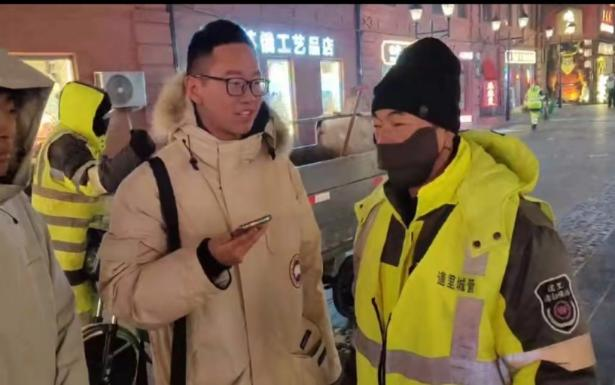 守护生态环境,城市发展质量高。整洁的城市、优美的生态环境背后,是各环保部门与城市居民的共同努力。哈尔滨市的旅游业发展得如火如荼,人流量大幅增加,随之产生了大量的生活垃圾。实践队员来到了游客最多的中央大街、冰雪大世界等旅游地,凌晨一点,中央大街仍有很多游客。实践队员在采访中得知,游客增多后,政府从其他地区调取了一批环卫工人分配到各旅游景点,而且工作模式调整为两班倒,最晚要工作到11点。环卫工人谈到:“垃圾变多了,以前一天处理两车垃圾,现在一天七、八车都不够。”当问到这么大的工作量累不累时,他笑着说:“不累,现在大家素质也都高了,基本不乱扔垃圾。好多南方游客都来了,我看还有好多外国游客,这是东北的骄傲!”实践队员又对当地商贩、环保工作者、游客进行了采访,了解到了整座城市齐心协力、同舟共济,向外来游客展示东北人的热情。实践队员以新颖的视角讲述家乡旅游业爆火背后的环保故事,感受家乡为环保事业做出的努力。